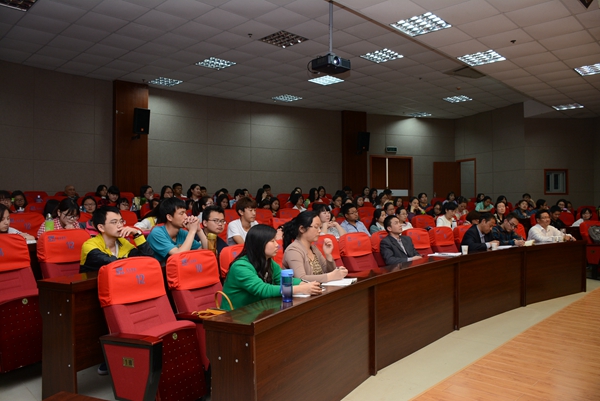 赵学清从“汉字的表意文字性质”和“汉字构形学”两方面阐述了汉字的深奥与奇妙。赵教授以一副微软小冰的计算机与人的区别问题作为开场白,他别具一格的开场大大吸引了同学们的眼球。他指出,语言要靠文字记录,书面语必须利用文字。文字是记录语言的符号系统,世界上文字分为表意文字和表音文字两大类,这种区分是从文字形体直接显示的信息是语义还是语音来确定的。汉字性质与汉语本身的特点密切相关,由于汉语同音词太多,汉语无法使用拼音文字。而对于汉字构形学,他从汉字因形构意的特点,汉字的书写单位和构形单位和汉字结构三个方面进行了解说,同学们听的津津有味,不时报以热烈的掌声。