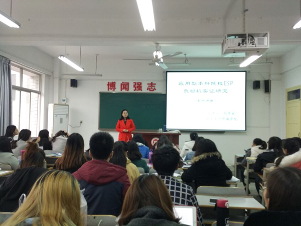 11月15日,我院英语系教师孙李丽在一号教学楼203教室做《应用型本科院校ESP负动机实证研究(案例讲解)》报告,我院14级英语专业学生参加报告。