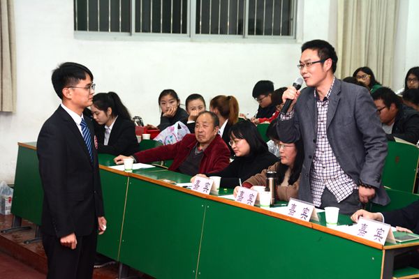 为喜迎十九大的顺利召开,传承中华经典文化,品鉴古韵诗词,体味中国古诗词的魅力, 从而继承优秀诗词经典,弘扬中华传统文化,展现人文风采的能力与意识,陶冶学生情操。2017年11月9日,由我院团总支主办、院学习部承办的“传承文化经典”诗词大会在一号教学楼二号报告厅如期举办。我院中文系主任席忍学、副主任李小奇、团总支书记张善红、文学院教师郑传锐、宋贤以及辅导员王宝堂,柯曾波出席并担任此次活动的评委。