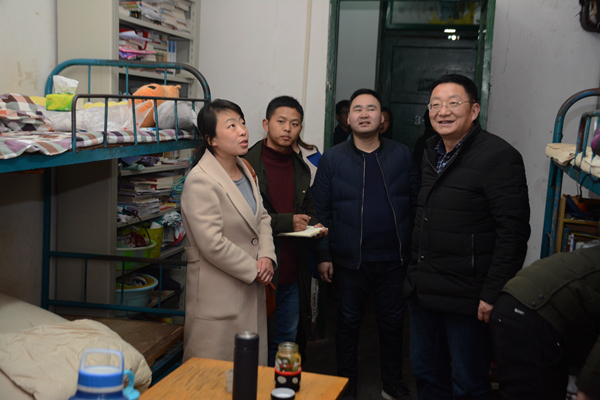 为了解返校学生的生活状况,传达院领导对同学们的关心呵护,使返校学生拥有良好的精神面貌。2月25日晚,人文学院党总支书记赵正鑫,学工办主任刘丽娜,团总支书记张善红及我院辅导员吴晓丹、周瑶、王宝堂、柯曾波老师同行,走访学生宿舍慰问返校学生。