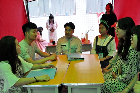 在精心布置的会场里,秘书专业学生以其较高的知识素养让前来体验的老师、学生感受到了秘书专业的独特魅力。
