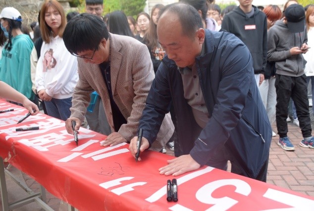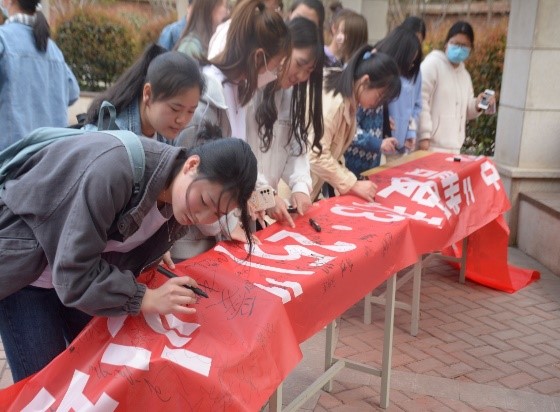 最后在我院学生代表张芳梅同学的带领下,现场师生进行宣誓和签字。阵阵激昂的宣誓声,是每个同学发自内心对青春的热爱,对未来更好自己的期许。