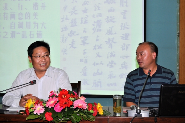在报告中,卢燕新用简洁生动的语言首先对文化的定义及中国文化的特点、中国文学文化作了细致地讲解,他认为中国文化具有四个特点,即:中国文化是一个集合体,包罗甚为宽广;中国文化具有独特的魅力;在我国古代文化中,各种文化关系非常密切;中国文化具有统一性、延续性、包容性特点。其次,他从世界文化交融必然与冲突伴随、中国人在世界文化冲突面前的自我选择、中国文化发展的必然抉择、中国社会经济发展的必然需求等四个方面阐述了近二十年来中国文化热的原因。接着,他从中国文化和国学的概念外延与内涵两个方面深入地分析了中国文化与国学的关系,指出在概念外延的最大范围层面,国学等同于中国文化,从概念内涵分析,国学重在学术研究层面内涵的表述,中国文化则重于文化区域、文化类型层面内涵的表述,二者略有区别。最后,他对中国哲学文化发展历程、中国书法文化、中国科举制度文化等作了简要介绍。会后,卢燕新对现场学生提出的问题作了耐心细致的解答。