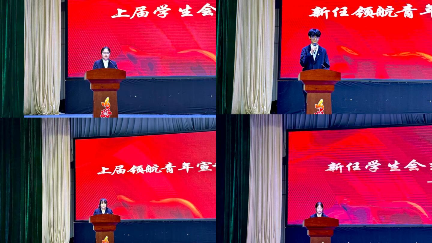 上届学生会主席团成员张源、领航青年宣讲团负责人王秀文分别分享了过去一年的工作经验与成长感悟。新任学生会主席团成员龚钰炘格、领航青年宣讲团负责人刘翔宇代表新任团学干部作表态发言,表达了对学院领导、老师以及同学们的感谢,汇报了未来一年的工作思路,表示将恪尽职守、团结协作、锐意创新,努力服务好全院同学,为人文学院团学工作的发展贡献青春力量。
