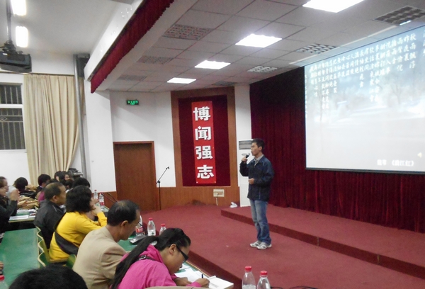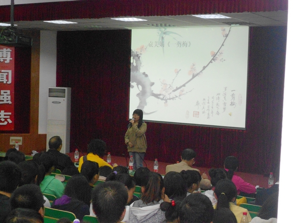 晚7:30,由我系团总支主办,第一学生党支部承办的中华古典诗词吟唱会,在一号楼报告厅二隆重举行。我系教授王天时,辅导员赵文英、黄璜、刘丽娜担任此次活动评委。