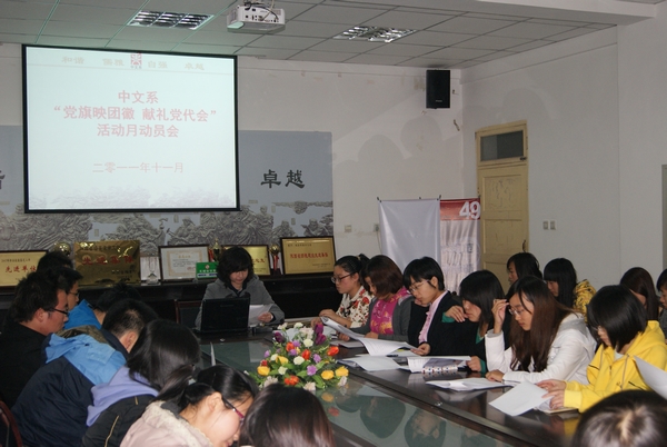 “美化多媒体教室”活动,学习部组织开展“党旗映团徽,献礼党代会”征文活动,文艺部组织开展“歌唱祖国,放飞梦想”和“永远跟党走”演讲比赛。这些活动将陆续开展,活动结束后,系团总支将对“党旗映团徽,献礼党代会”活动月的优秀团支部和优秀个人予以表彰奖励。