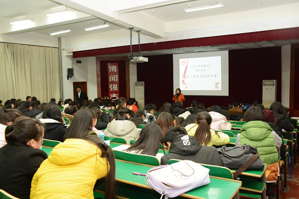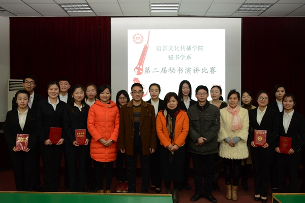 12月29日晚,我院于报告厅二举办了第二届秘书学系演讲比赛决赛,秘书学系全体教师出席比赛并担任评委,为提升低年级参与感,本次比赛特意安排了四位大一、大二学生担任评委。秘书学系全体学生观看比赛。