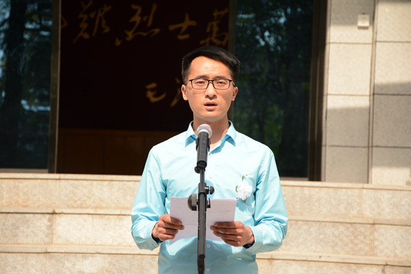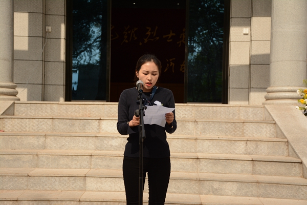 伴随着国歌声,学生代表向烈士们献出花圈,庄重的默哀表达了对先烈的深切哀悼和无尽的敬仰之情。活动中,由学生代表刘石泉和党员代表张羽发言,倡导同学们向先烈们永怀感恩之心,热爱祖国,发奋图强。芦晓立对先烈们表示崇敬并讲话。她说,热爱祖国,为祖国献身的英雄无论何时何地都会受到人民的尊敬和爱戴。希望全体学生能够弘扬先烈精神,积极进取,将先烈精神铭记在心,付诸于行。
