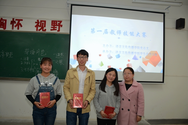 为了提升师范院校大学生在学习和工作中的教学实践能力和综合素质,为同学们提供一个展现学习风采的舞台。4月13日,我院成功举办了学生教学技能大赛。我院英语教研部主任李亚红、我院团总支书记张善红和我院教师杨晓照出席本次大赛并担任评委。