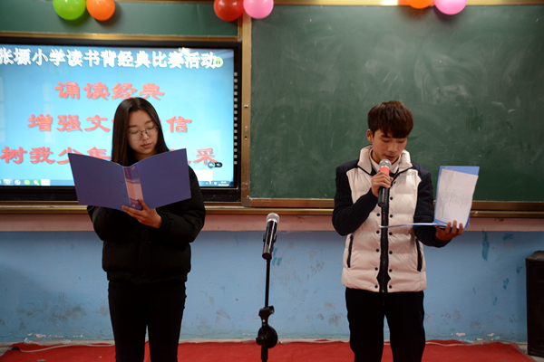 11月29日下午,由张塬小学和我院共同举办的以“诵读经典,增强文化自信,树我少年中国风采”为主题的读书背经典比赛活动在张塬小学举行。本次活动在张塬小学科学实验室举办,参加诵读比赛的学生均来自于张塬小学一至六年级,我院青年志愿者也在活动中带来了精彩的诵读表演。