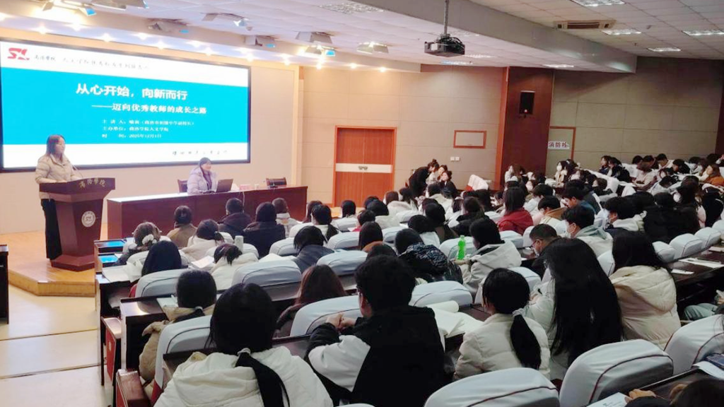 为帮助师范生明晰职业方向、夯实专业基础,12月1日,我院邀请96级英语教育专业优秀校友、商洛市初级中学副校长喻莉作了题为“从心开始,向新而行——迈向优秀教师的成长之路”的专题报告。英语专业和汉语言文学专业150余名学生参加了报告会。报告会由我院党委书记刘麦霞主持。